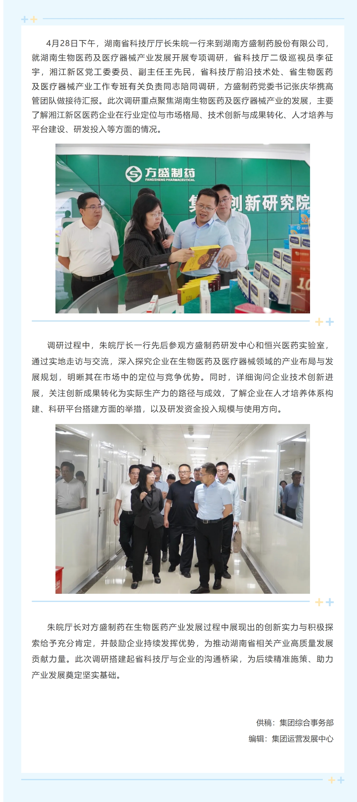 湖南省科技厅厅长朱皖调研尊龙凯时制药丨聚焦生物医药及医疗器械工业生长